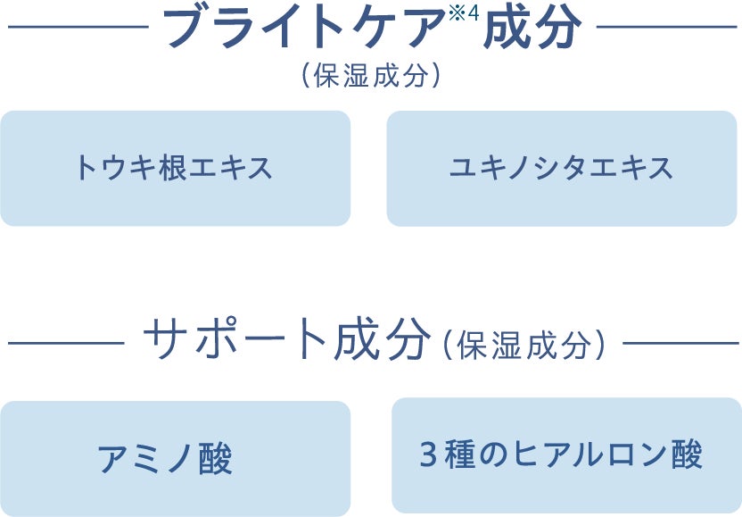 シミの目立ちにくい、均一なうるおい素肌へ導くブライトケア成分配合。