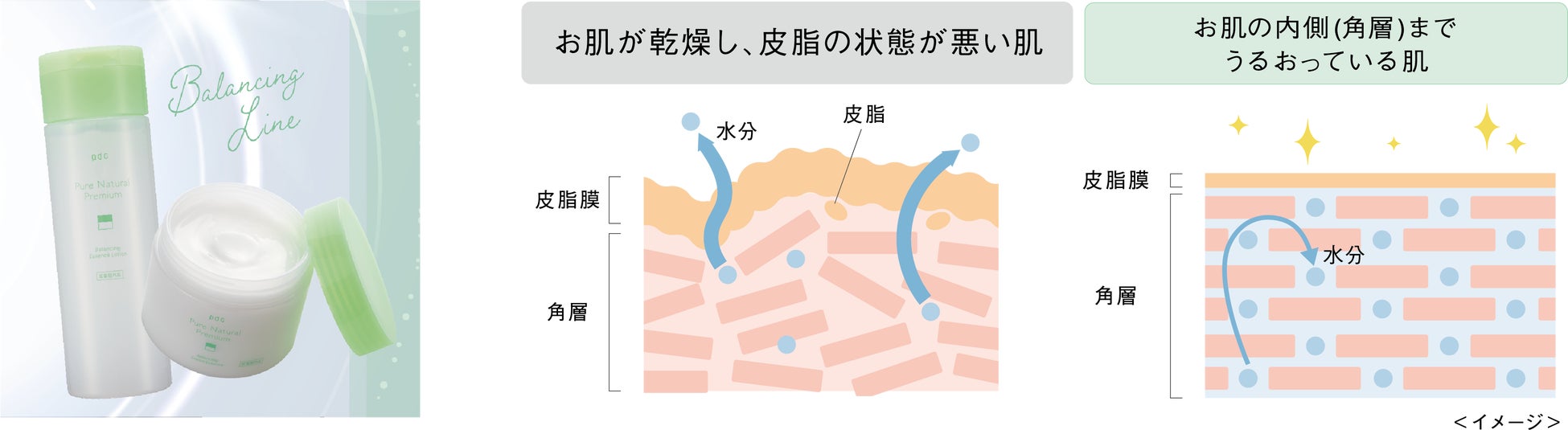 肌の内側(角層)までしっかりうるおすことで、水分と油分のバランスを整え健やかな肌に導きます。