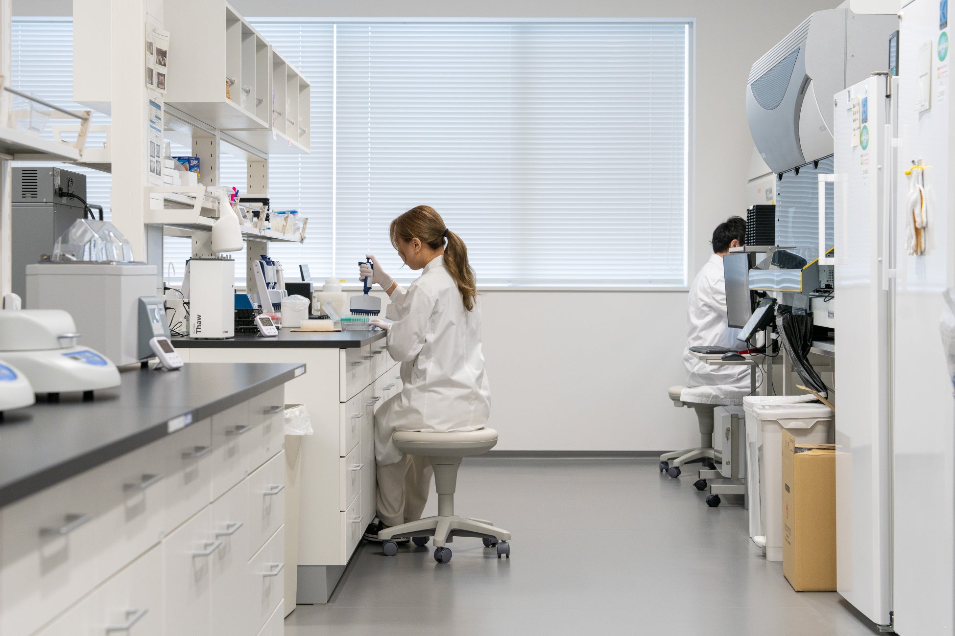 プロテオミクスラボは、国内で初めてかつ唯一※3SomaScan®測定を実現する技術力を持つラボとして2022年12月に稼働を開始しました。2023年11月に実施した衛生検査所登録をはじめとする機能拡張によって、フォーネスビジュアス検査の国内完結・一貫提供体制構築の実現に至りました。