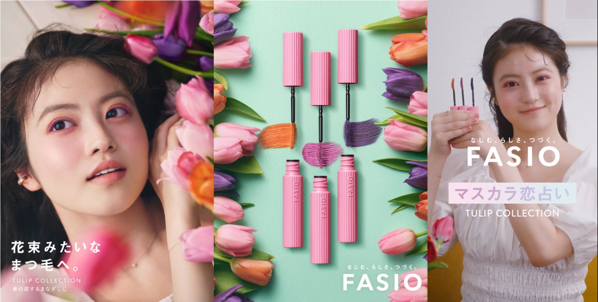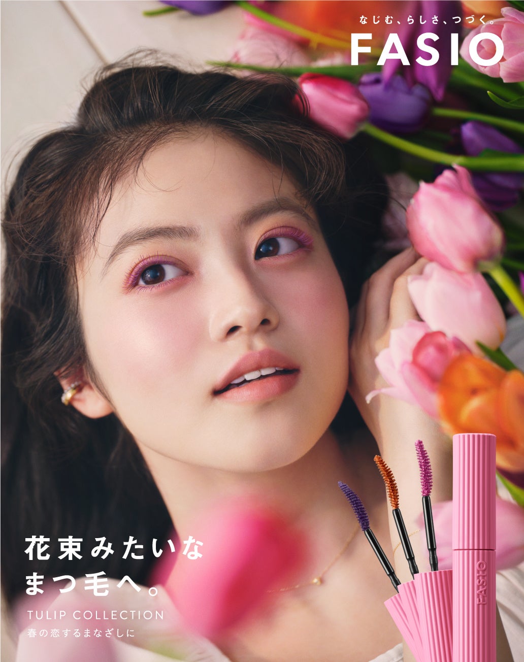 2024年春のテーマである、“Tulip Collection”をイメージしたカラーマスカラ「ファシオ ウルトラ WP マスカラ(ロング)」で目もとを彩った今田美桜さん。色鮮やかなチューリップの花言葉からインスピレーションを受けた色味は、春の訪れを楽しむのにぴったりのカラーです。花束のように色づくまつ毛と、まるで恋する乙女のような表情の今田さんをご覧いただけます。また、公式SNSでは今回登場するマスカラを使ったマスカラ恋占いに今田さんが挑戦している様子が公開されます。
