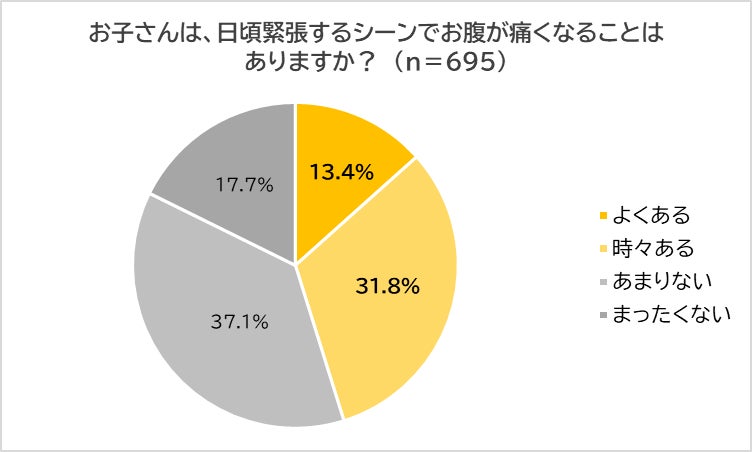 そこで、うんちをチビってもバレないお守りパンツ「OMAPAN(オマパン)」のネットショップ事業及び卸事業を展開する株式会社OMAPAN(本社:東京都中央区、代表取締役社長:洞本 昌明)は、受験生のお子さんがいる母親695人を対象に「緊張するシーンでの子供のお腹事情」について調査を実施いたしました。