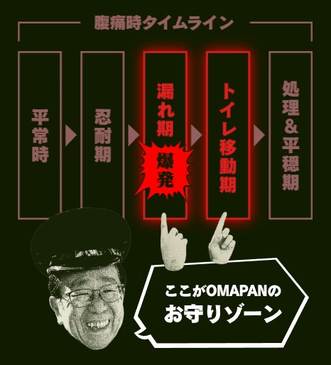 OMAPANは、危険かもしれないという時にお守りとしてご活用ください。但し、あくまでオムツ未満のため、爆発した場合、パンツ内は悲惨な状態です。くれぐれも漏れたまま過ごすのではなく、トイレ移動後の平穏タイムまでの時間稼ぎとしてお使いください。