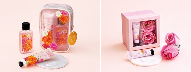 見た目も香りも華やかで、もらってうれしい「ポーチインハンドケアセット」と「ブルーミングプチギフト」を新しく2月9日に発売します。