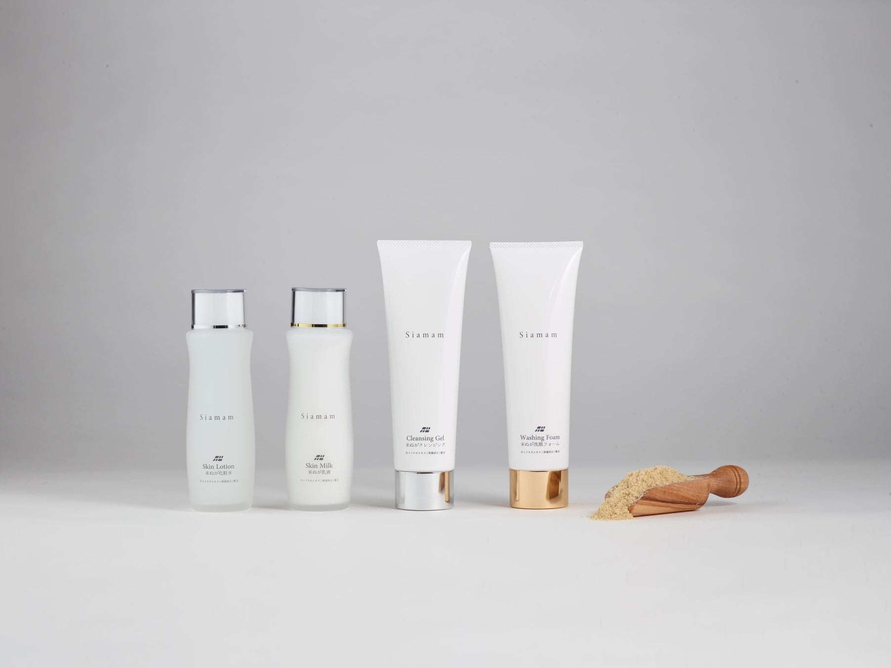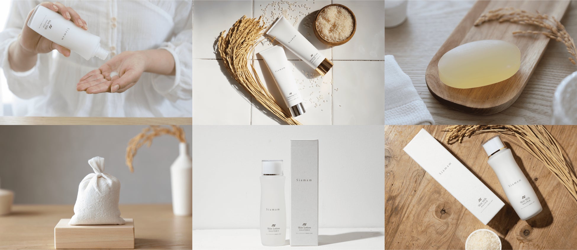 「Siamam」は、当社の農場で栽培した特別栽培米「北海道 水芭蕉米」の米ぬかの栄養を丸ごと閉じ込めた化粧品です。