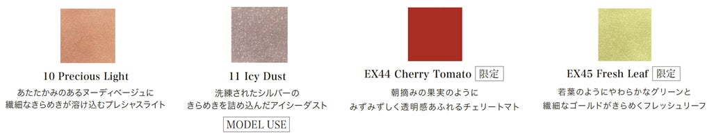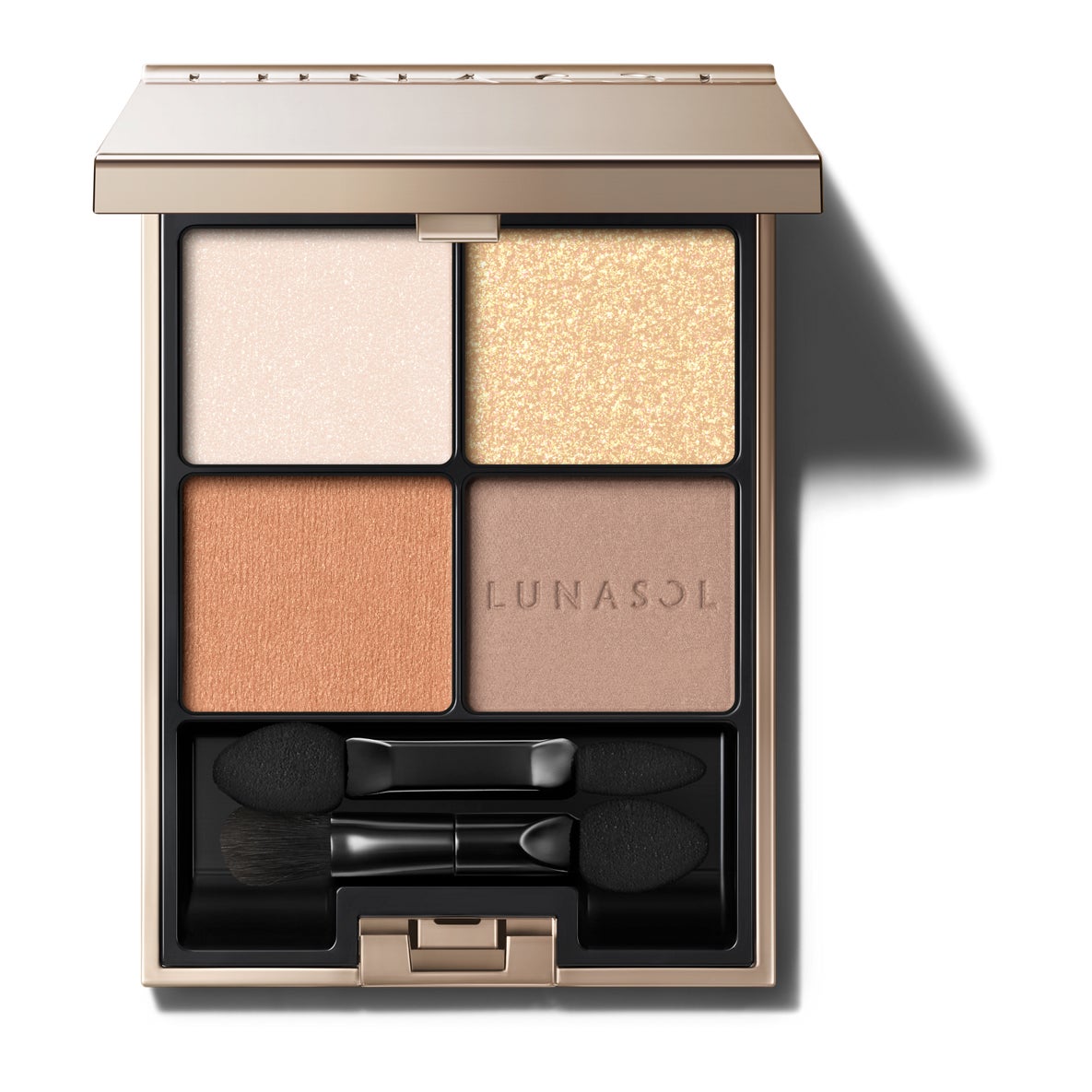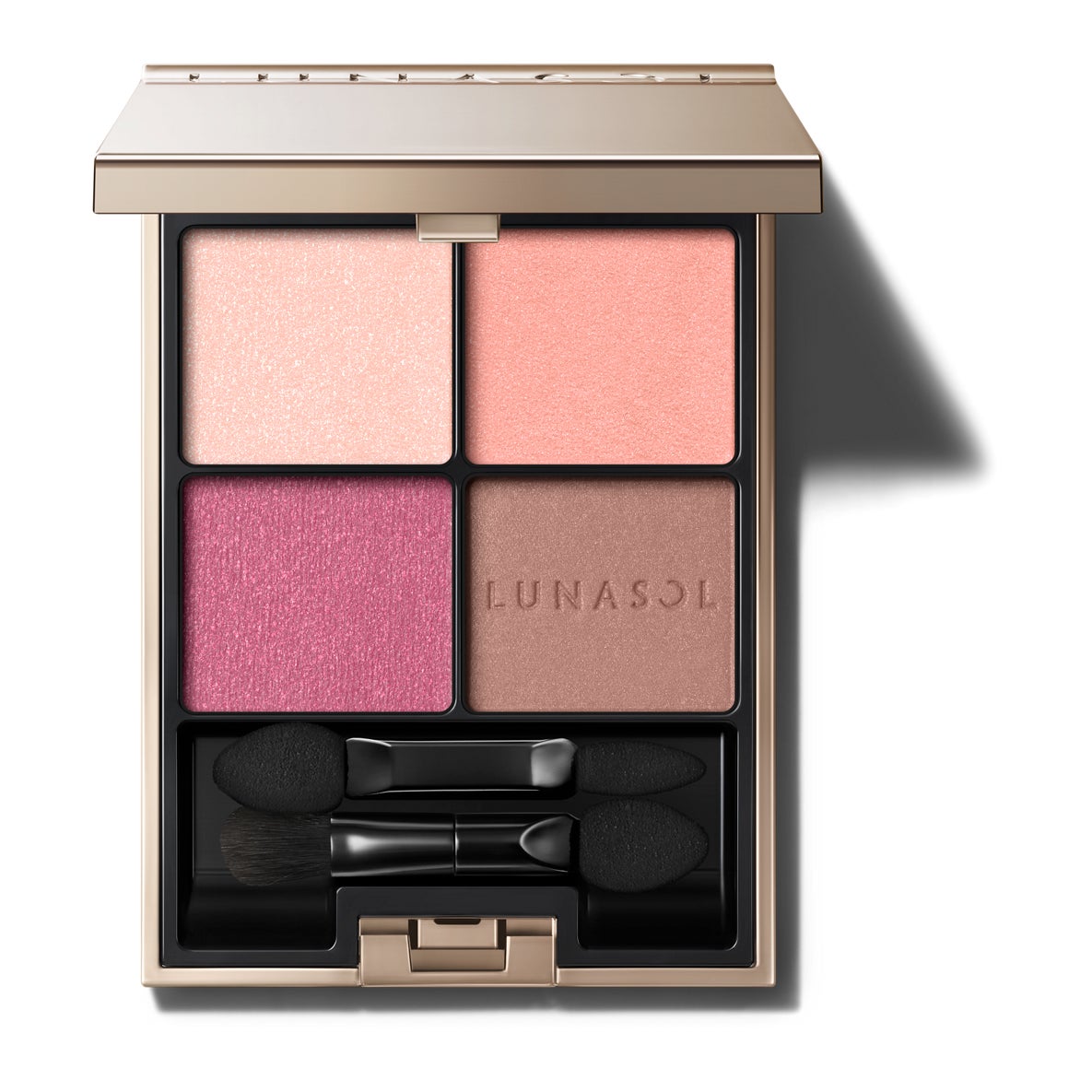 透けるような色のレイヤードで、まぶたを染めるように彩り、つややかな奥行きを感じる目もとを演出する4色セットアイシャドウ。