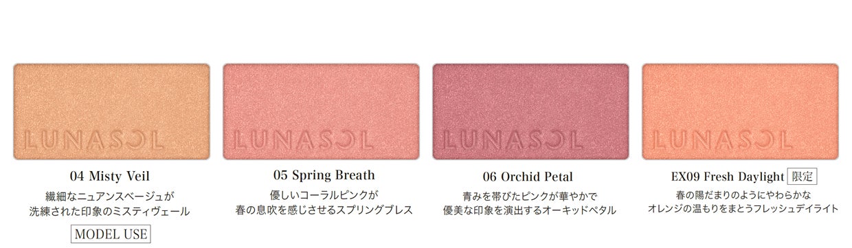 ◆ルナソル カラーリングシアーチークス(グロウ)新色4色(うち限定1色) 2,750円(税込)