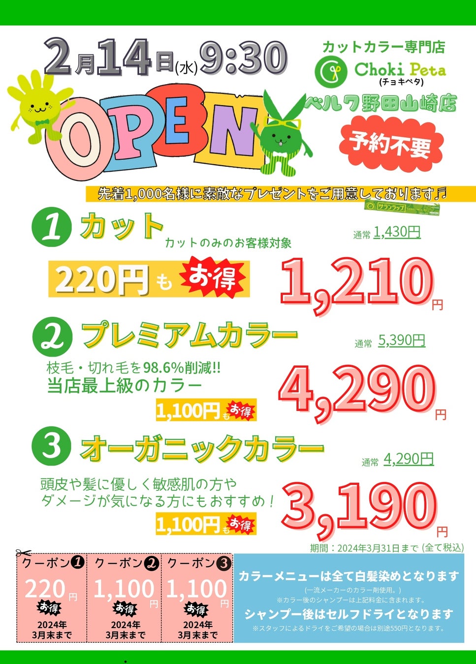 カットカラー専門店 チョキペタ ベルク野田山崎店2月14日(水)オープン