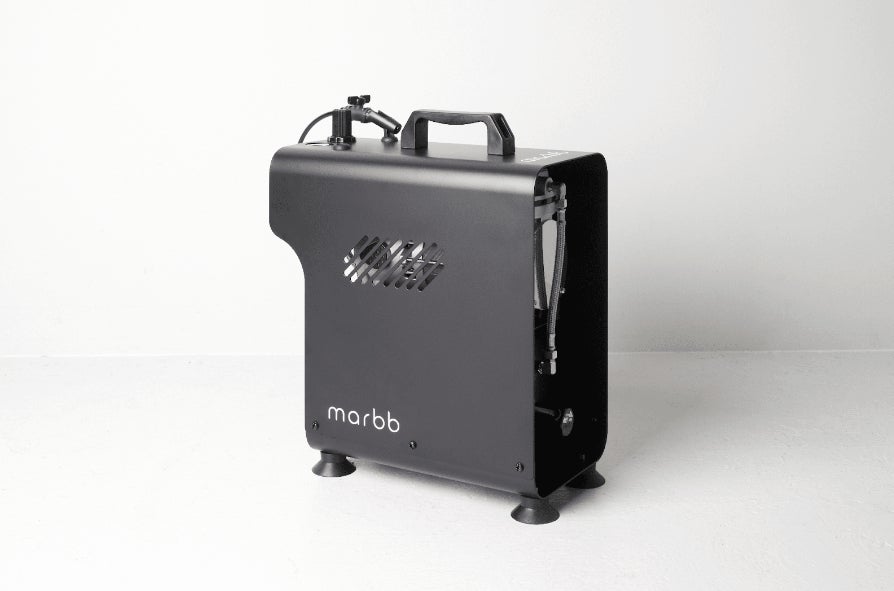 理美容サロン向けナノバブルシステム「marbb(マーブ)」は、マイナスの電荷を帯びた炭酸の2000分の1以下のナノバブルバブルを発生させ、毛穴の細部にまで入り込んで汚れを吸着、除去します。「marbb」を使用することで、髪に付着している汚れだけでなく臭いやかゆみの原因となるシャンプー剤やカラー剤・パーマ剤を徹底的に洗浄し、カラーやパーマ、サロンメニューのクオリティを上げることが可能になります。