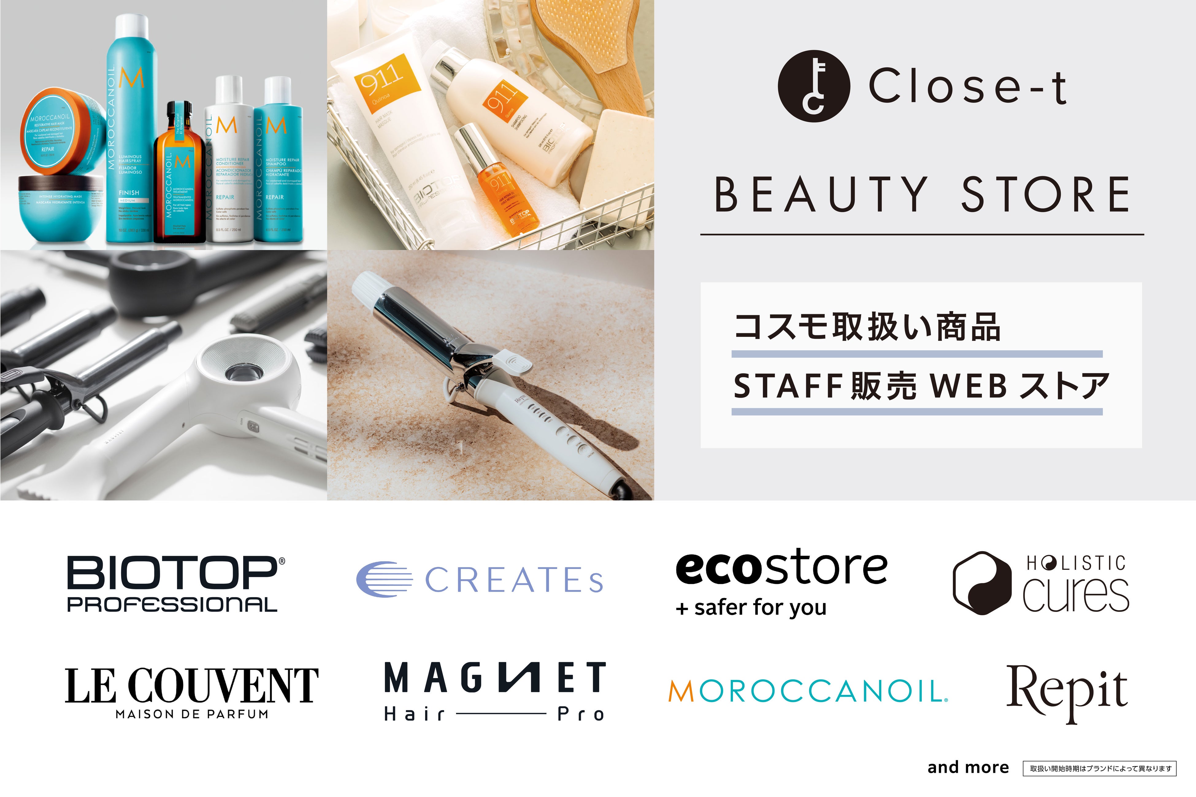 コスモは、美容師がもっと手軽にファッションやビューティーを楽しむことができれば、仕事上の環境だけではなく、QOLも向上をするのではないかと考えております。Close-tビューティーストアでは、韓国発の女神アイロン「Repit スクエアバー」、超速乾・美髪・多機能「マグネットヘアプロ ドライヤーゼロ ブラックプラス/ホワイトプラス」といった最新アイテムから「モロッカンオイル」などの定番人気アイテムまで、美容品や美容師必需品をいつでもお得なサロン価格で購入することができます。さらに、コスモ取扱い商品だけではなく「ecostore」「LE COUVENT MAISON DE PARFUM」など、人気ブランドのコスメやビューティーアイテムをClose-t会員限定の特別価格で販売いたします。