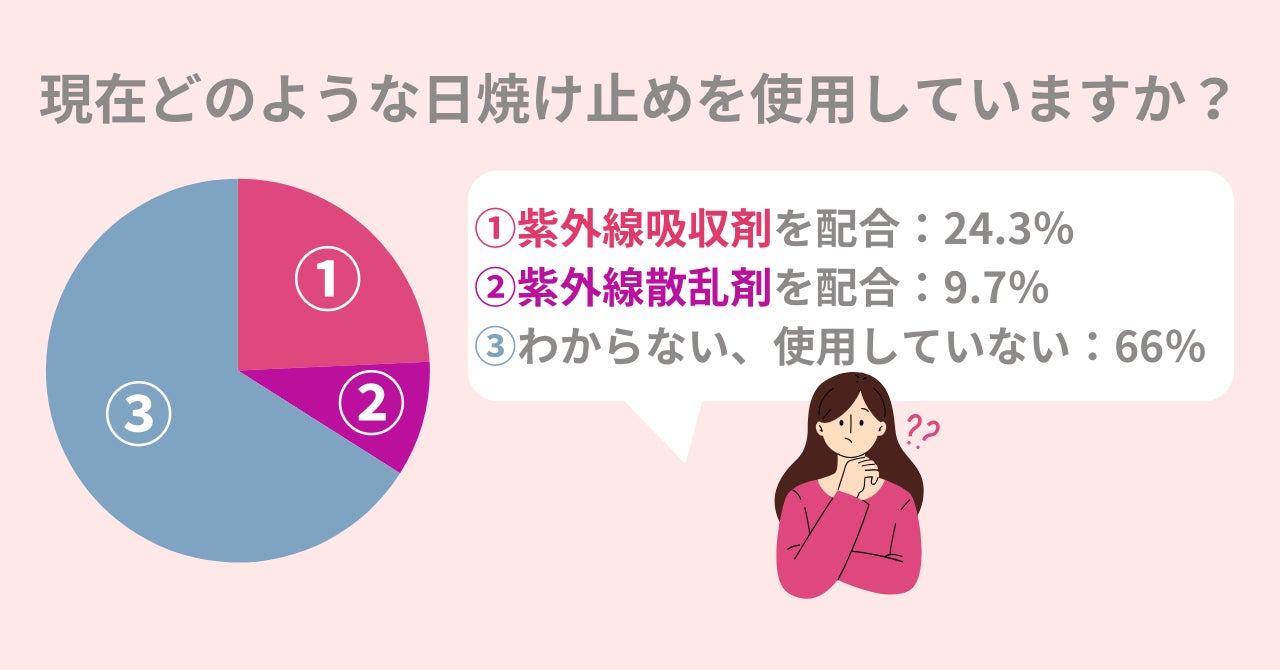 株式会社アースケアは20〜30歳の女性100名に「日焼け止め」に関する調査を行いました。<調査結果>66%の女性が、使用している日焼け止めに紫外線吸収剤・散乱剤のどちらが配合されているかがわからない