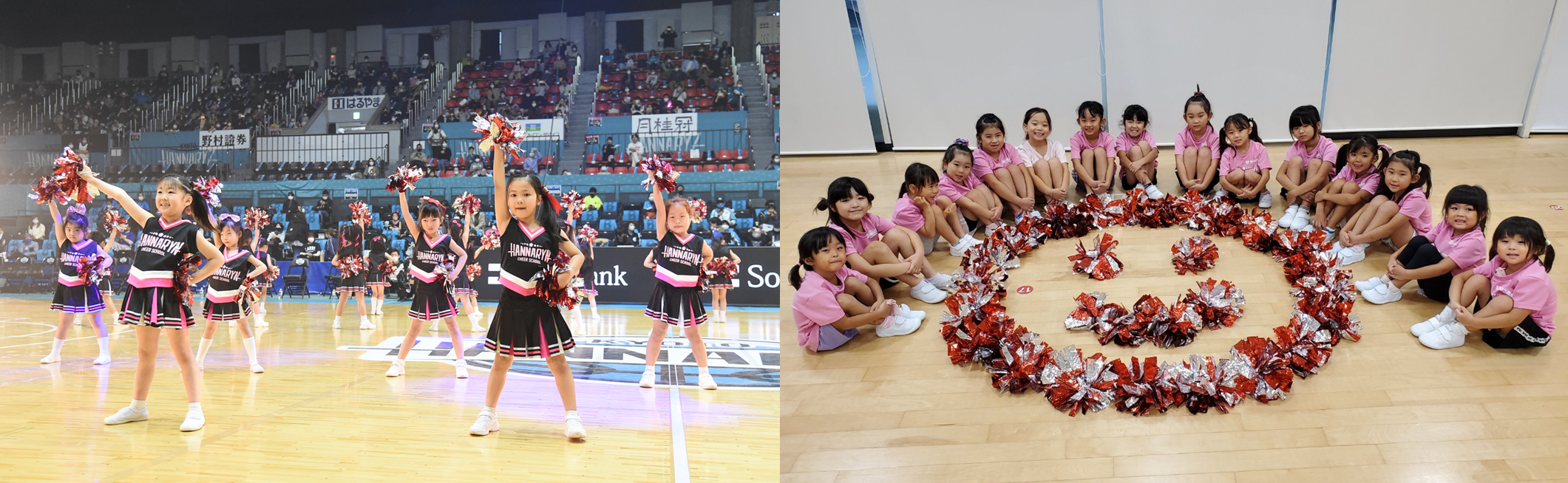 Bリーグで活躍する京都ハンナリーズの公式チアスクールで、京都ハンナリーズのホームゲーム他、様々なイベントに出演しチアダンスを披露しています。笑顔・元気をモットーにチアの基礎や、仲間を思いやる気持ちも大切に、京都府内でクラスを運営しています。