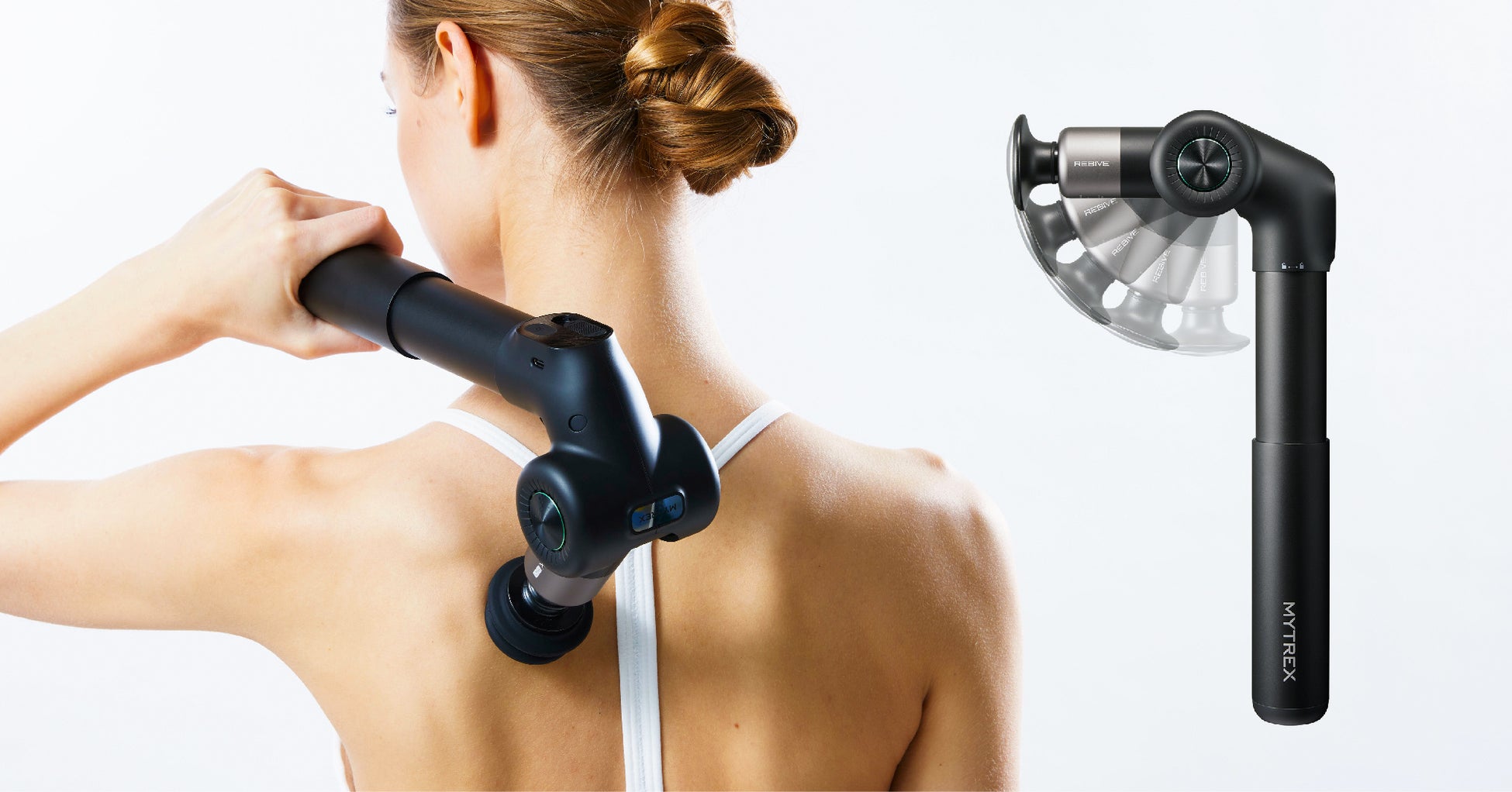 ⼈気商品は、パワフル振動で本格ケアを叶えるトータルボディケアハンディガン『MYTREX REBIVEシリーズ』と、サロン級のムダ⽑ケア&ブライトニングケアを叶える次世代光美容器「MYTREX MiRAY」。