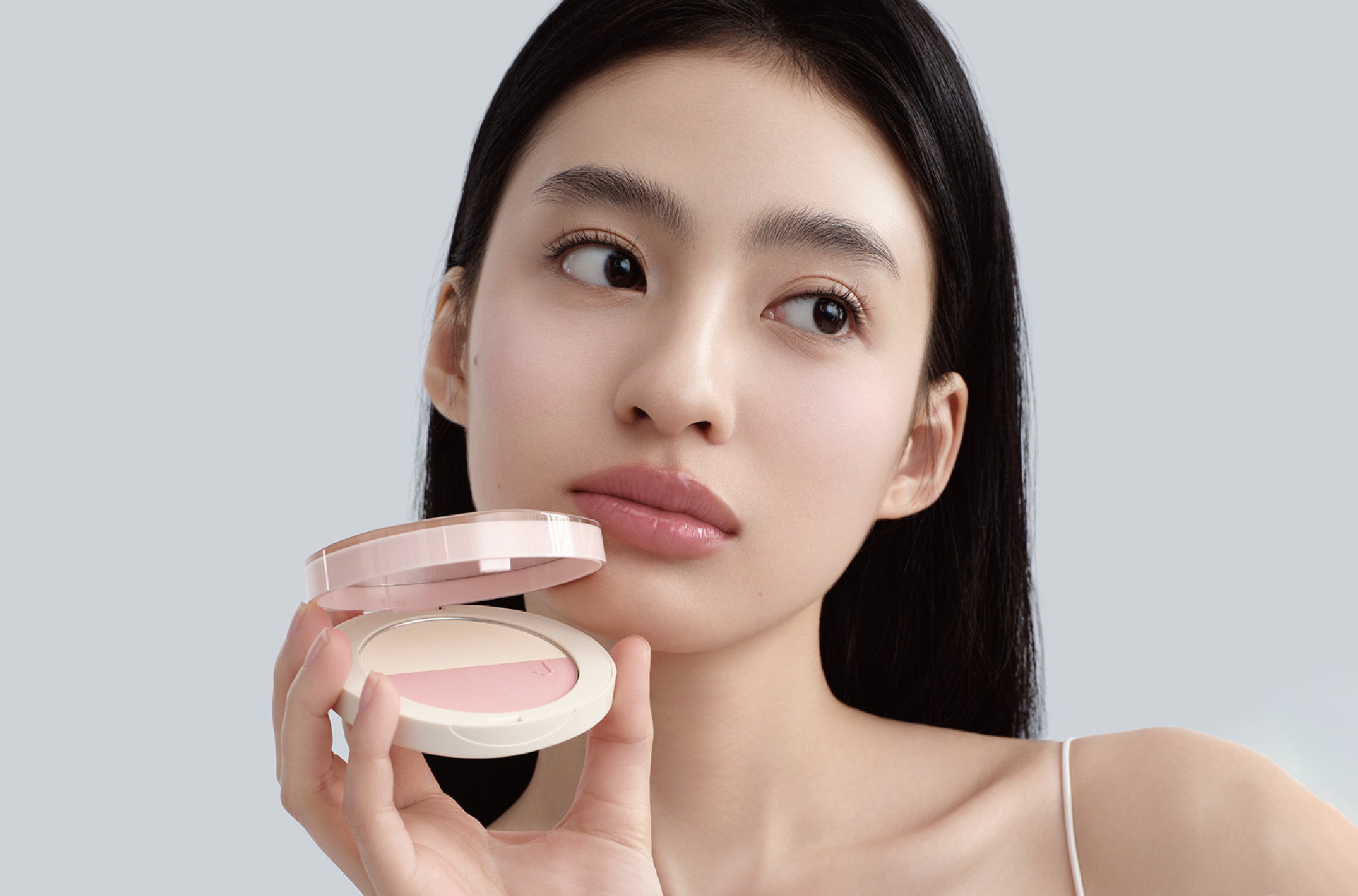 メイク直しのお悩みを一掃する、チークとマットハイライトが一体型になったパクト。