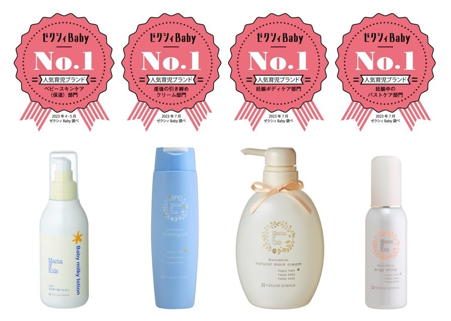 低刺激スキンケアメーカーのナチュラルサイエンス(本社:東京都中央区、代表取締役社長:小松令以子)では、生後すぐから使える低刺激スキンケア・ボディケアなどを扱う「ママ&キッズ」ブランドの全4アイテムが「ゼクシィBaby 育児ブランド クチコミランキング」にて1位を受賞しました。