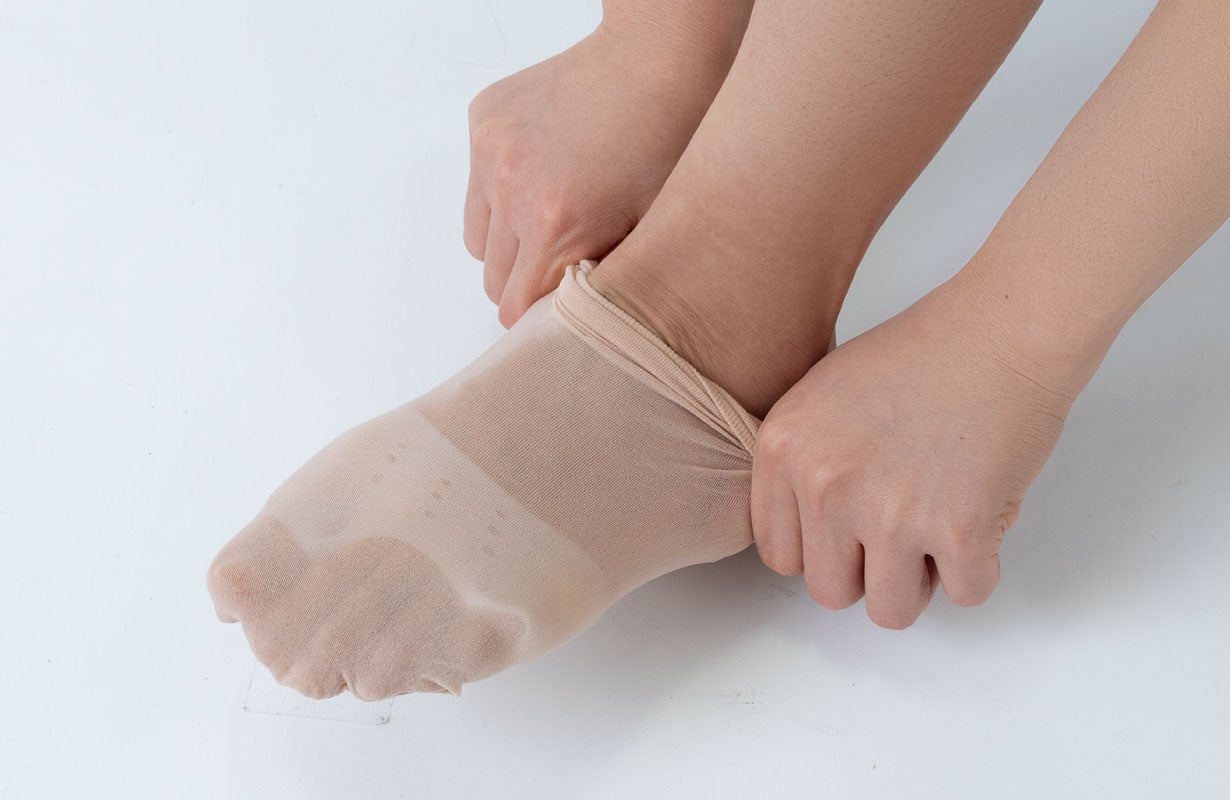 上から靴下・ストッキングをはくとパッドがずれにくい!