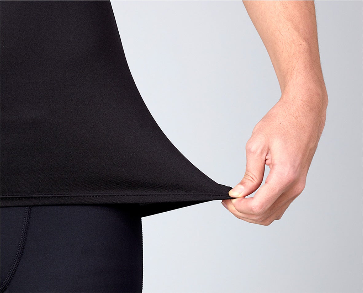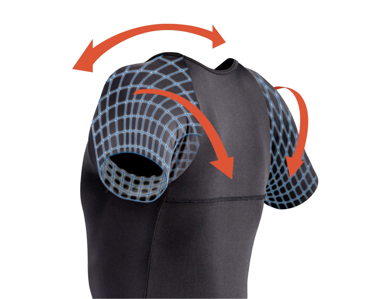 腕を上に上げやすく、動きやすくて心地良い着用感を実現しています。
