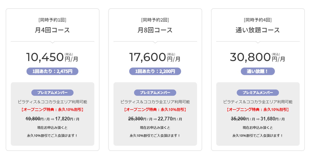 月4回/月8回/通い放題 プランより選択(10450円~30,800円)