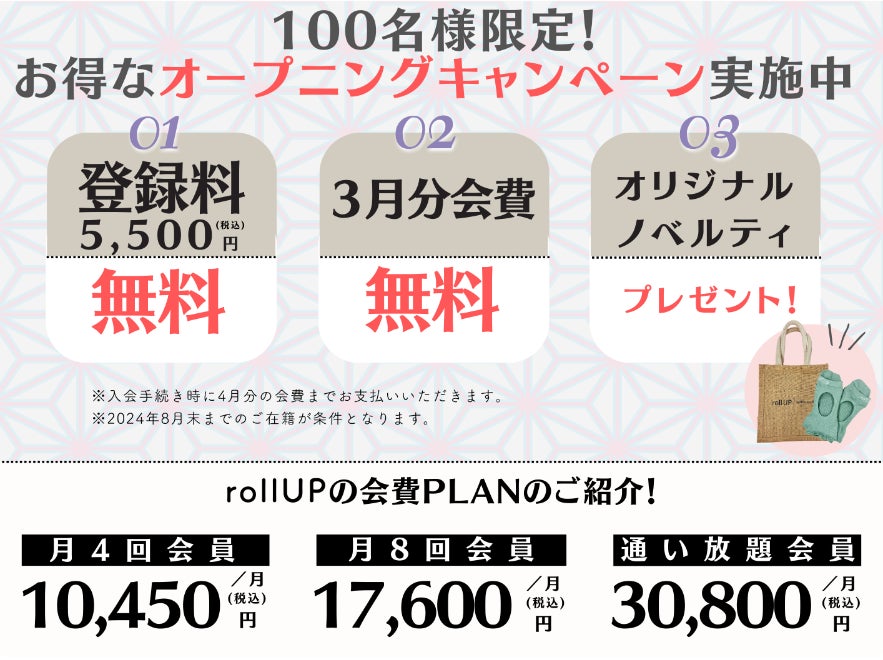 入会情報、体験会情報の詳細は、rollUP pilates studio ホームページをご覧ください。