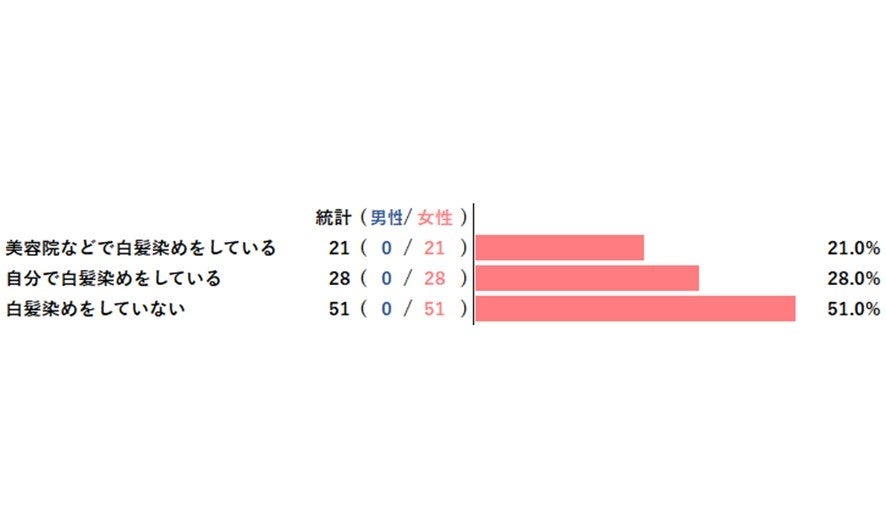 また、「あなたは白髪染めをしていますか?」とアンケート調査をした結果、1位は『白髪を染めていない』でした。