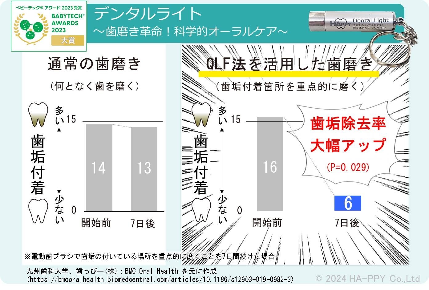 デンタルライトは、専門誌 BMC Oral Health に掲載された論文で、歯垢除去率を大幅に向上させることが実証された光学手法を採用しています。