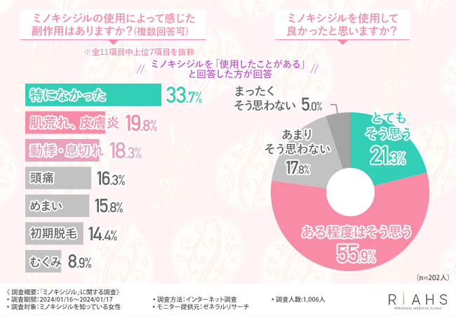 半数以上の人がミノキシジルの副作用について知っているか、聞いたことがあるという結果が示されました。