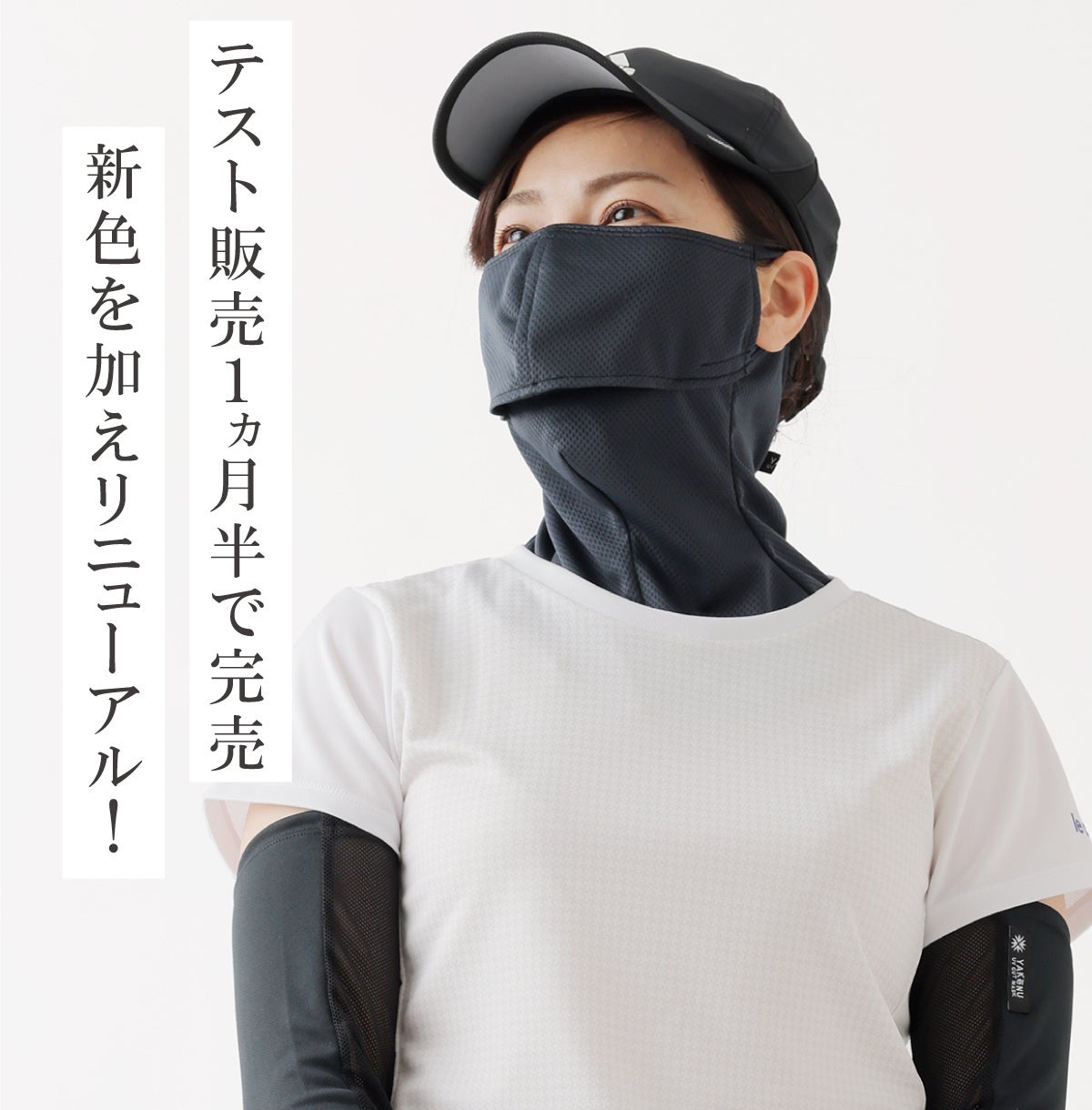 「ヤケーヌ」は日焼け防止を目的としたフェイスカバーで2010年の発売以来、累計販売点数240万点の人気商品です。2020年のコロナ禍以降、息苦しくないマスクとして飛沫防止やマスクエチケットとしてご着用いただく場面もあり、近年は非常に多くのお引き合いいただいております。昨年は美容にこだわる著名人発信頂き広く認知されるようになってきました。