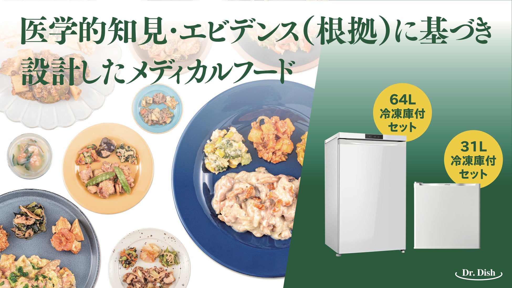 生活習慣病が気になる方に向けた宅配食「Dr.Dish(ドクターディッシュ)」を運営するサンマルコ食品株式会社(本社:北海道札幌市、代表取締役社長:藤井幸一)は、お客様からのお声をもとに、「Dr.Dish」にコンパクトな専用冷凍庫がついたスターターキットの販売をします。さらに、今回は新メニュー6種類も加わりました。