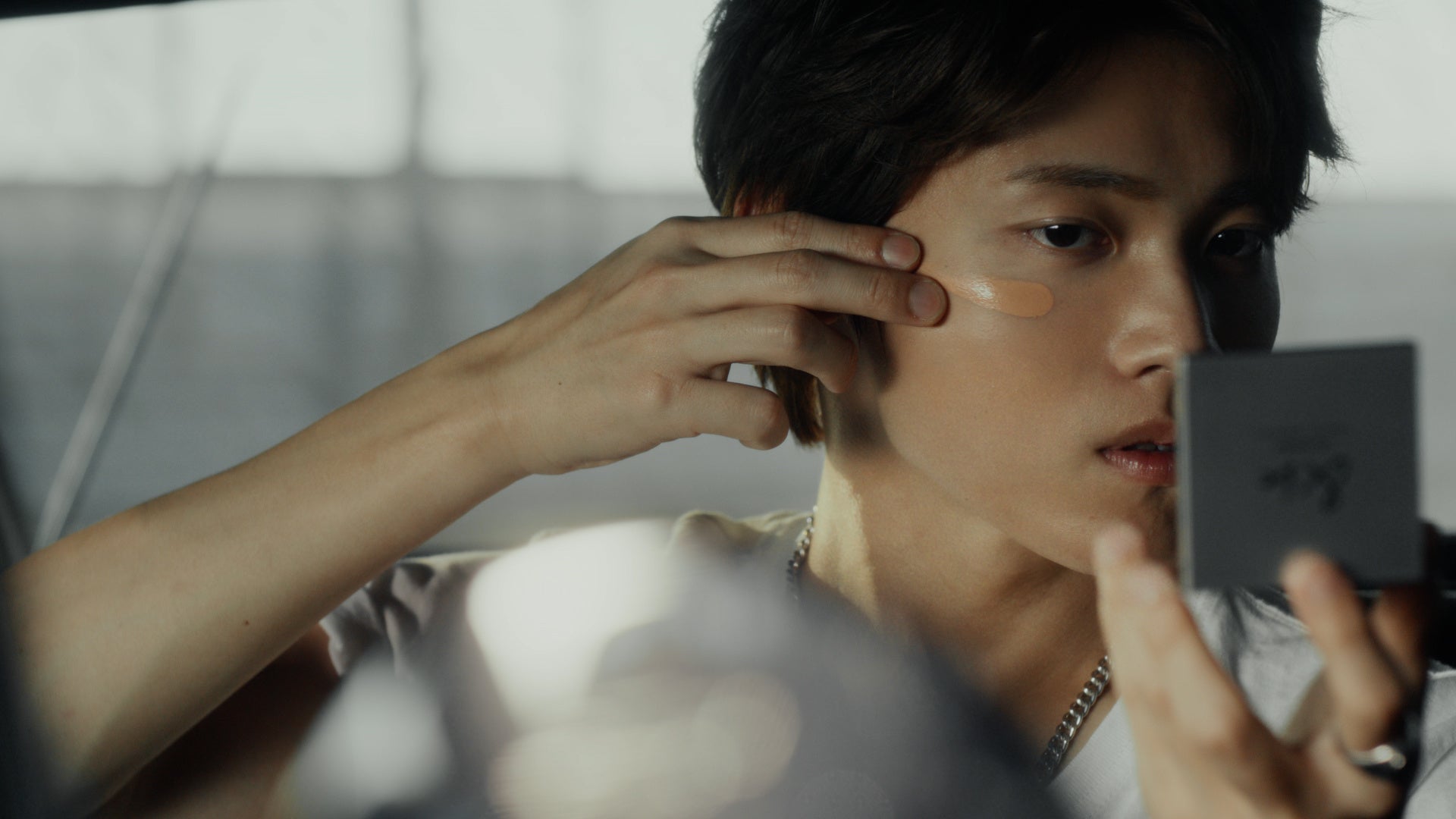 新CMの舞台は、ヴィンテージカーやBMX、ストリートバスケットコートなどのアイコニックなモチーフが散りばめられたガレージ。メンバーがダメージデニムにTシャツ、ネルシャツ、シルバーアクセサリーといったアメリカ西海岸のストリートスタイルに身を包み、乾いたギターサウンドから物語が始まります。肌への焦点ではなく、アティチュードへ焦点を当て、男性にとってもベースメイクやスキンケアが普遍的なものとして捉えられていることを、90年代を思わせる世界観でワイルドに表現しています。