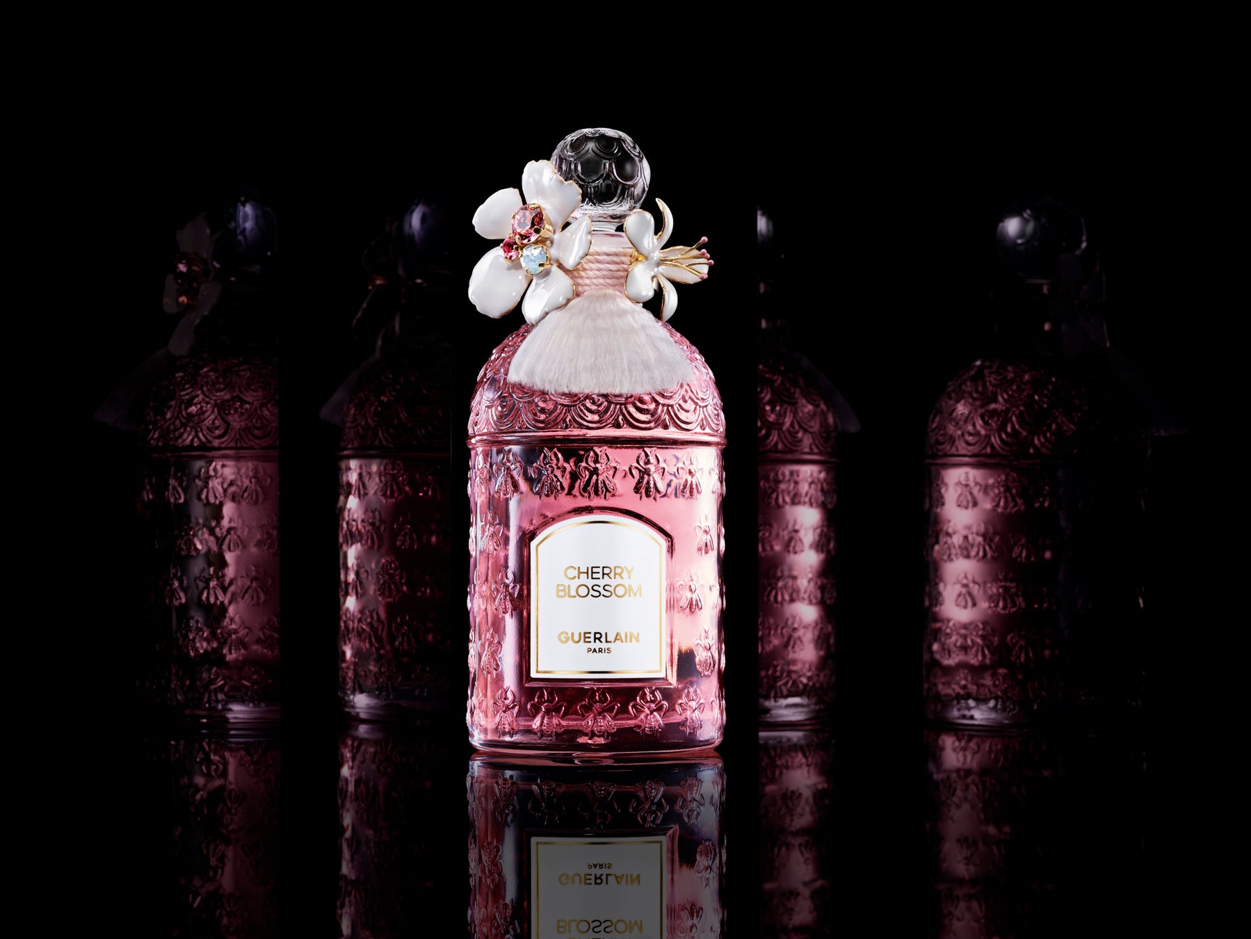 春の訪れを祝い、満開の桜を愛でる日本の「花見」の習慣に敬意を表し、誕生した香り〈チェリーブロッサム オーデトワレ〉。4 代目調香師ジャン・ポール・ゲランは、日本を訪れた際に出会った満開の桜に深く感銘を覚え、そよ風に運ばれるように、繊細で奥ゆかしさのある桜の香りを創り出しました。