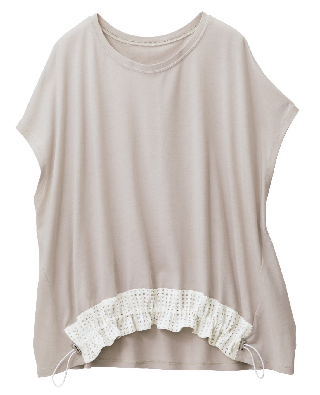 裾のドローストリングがアクセントで、お好みのシルエットに調整できるデザイントップス。