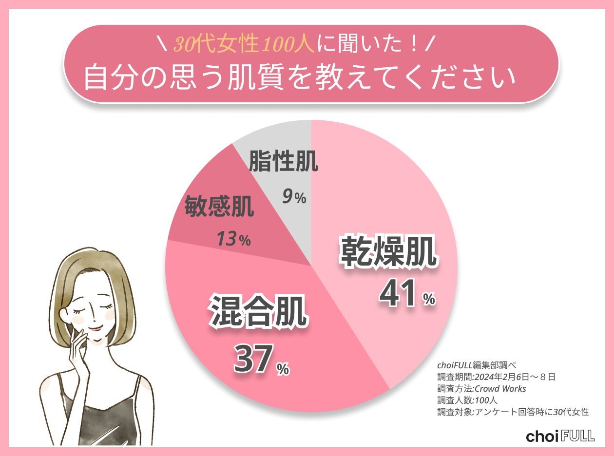 ・30代女性の約8割が乾燥肌か混合肌だと思っている