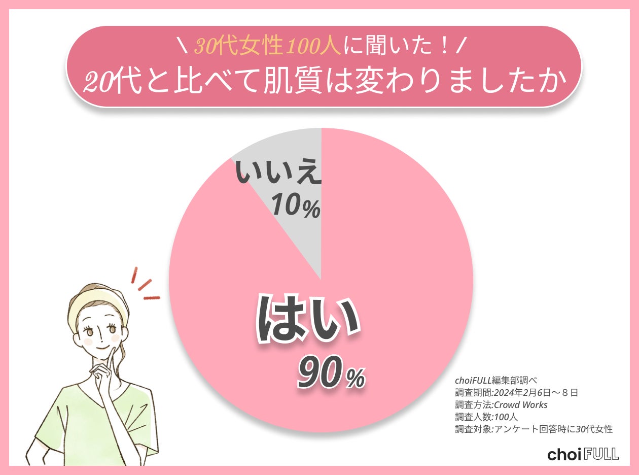 ・30代女性の9割が20代と比べて肌質が変わったと感じている
