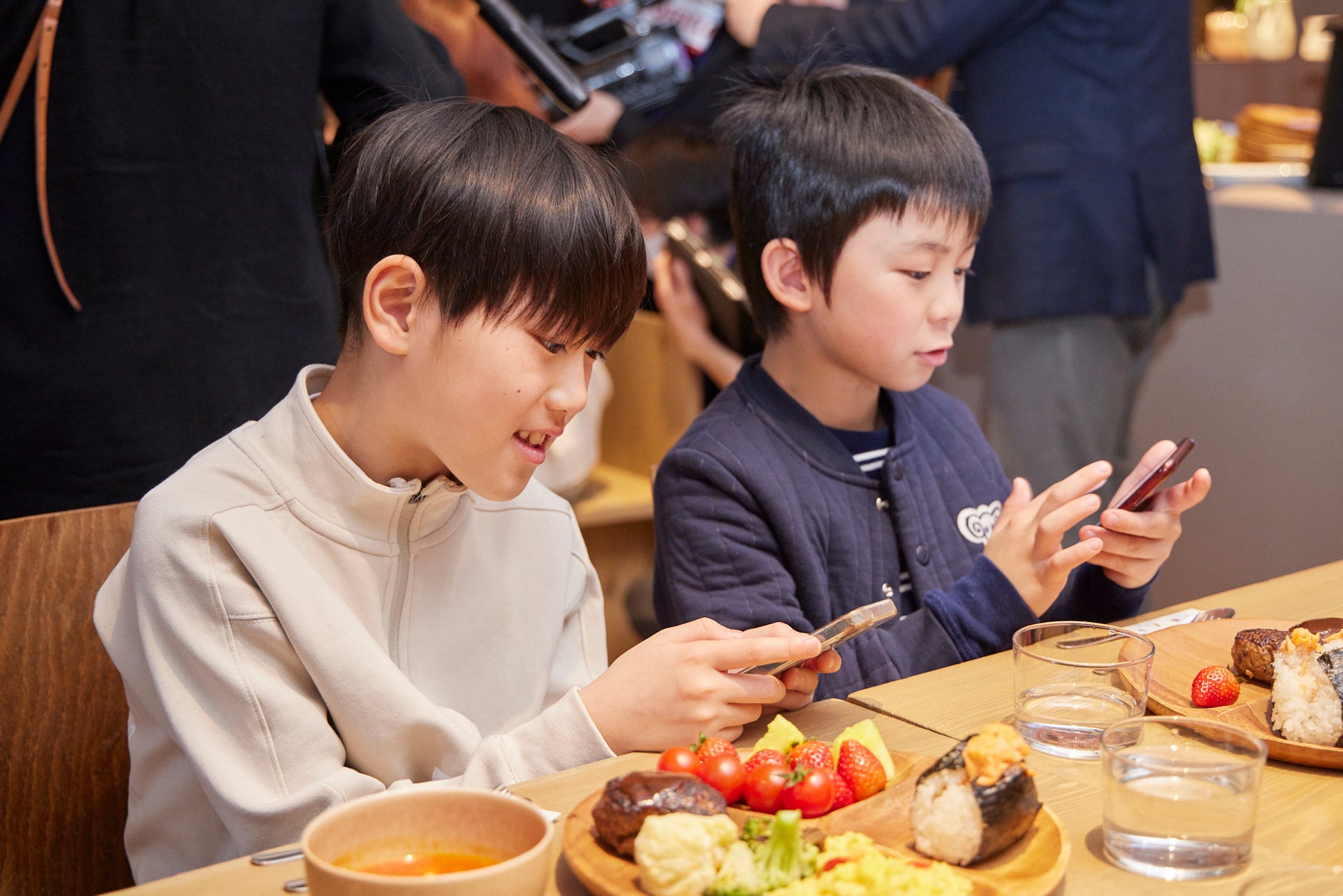 本アプリ公開にあたり、前日の2月18日(日)に小学生を招待し、ビュッフェ形式の食事を撮影しながら、食材ごとの栄養ポイントや豆知識について楽しく学ぶ「もぐもぐタウン」アプリ体験会を開催いたしました。