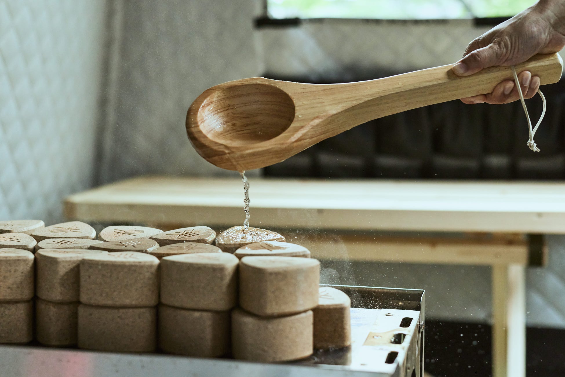 400年以上の歴史と技を持つ日本香堂によるフレグランスブランド。日本各地の厳選したヒノキ、クスノキなどの和木、ユズや和ハッカといった果実やハーブの100%天然精油を加え創香したブレンドオイルのミストがテント内に広がり、体感温度と発汗作用が高まり心身ともリフレッシュ頂けます。セルフロウリュで蒸気を自分で調節できるのもおすすめ。