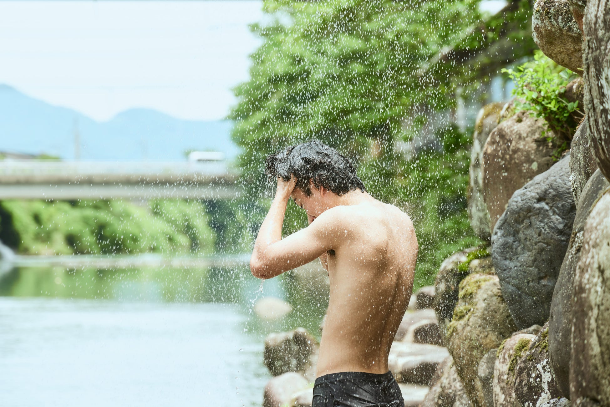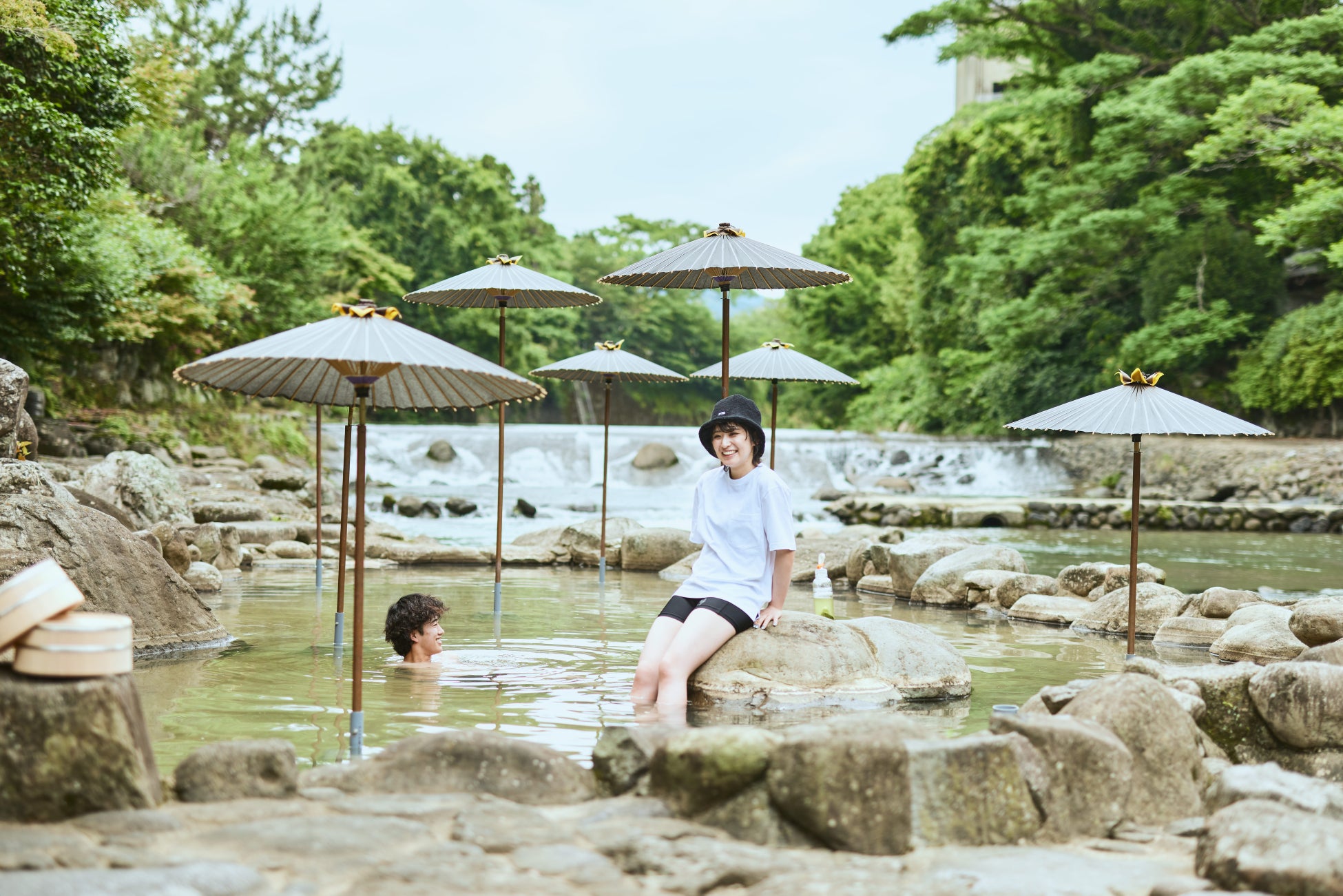 河畔サウナでしっかりと汗をかいた後に入る嬉野川すぐそばのかけ流し温泉水。