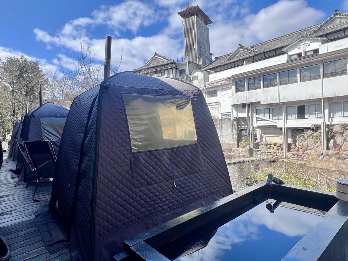 嬉野河畔で愉しむ極上サウナ体験。解放感溢れる自然の中に立つ、1テント貸切のプライベート空間で、性別を問わず親しい人と自由にサウナを満喫できます。大切な方と新感覚の整う体験をどうぞ!
