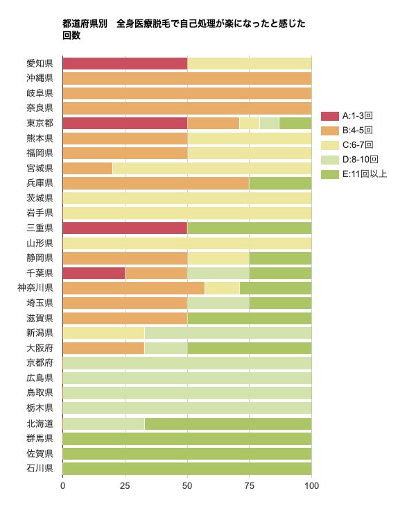 回答地域別「医療脱毛で自己処理が楽になったと感じた回数は?」