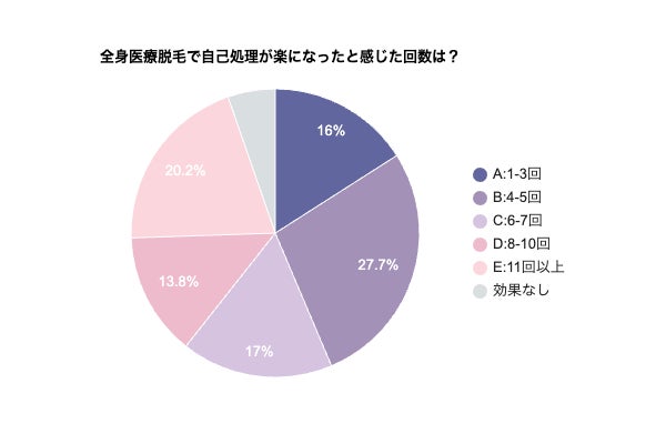 VIO以外で「医療脱毛で自己処理が楽になったと感じた回数は?」