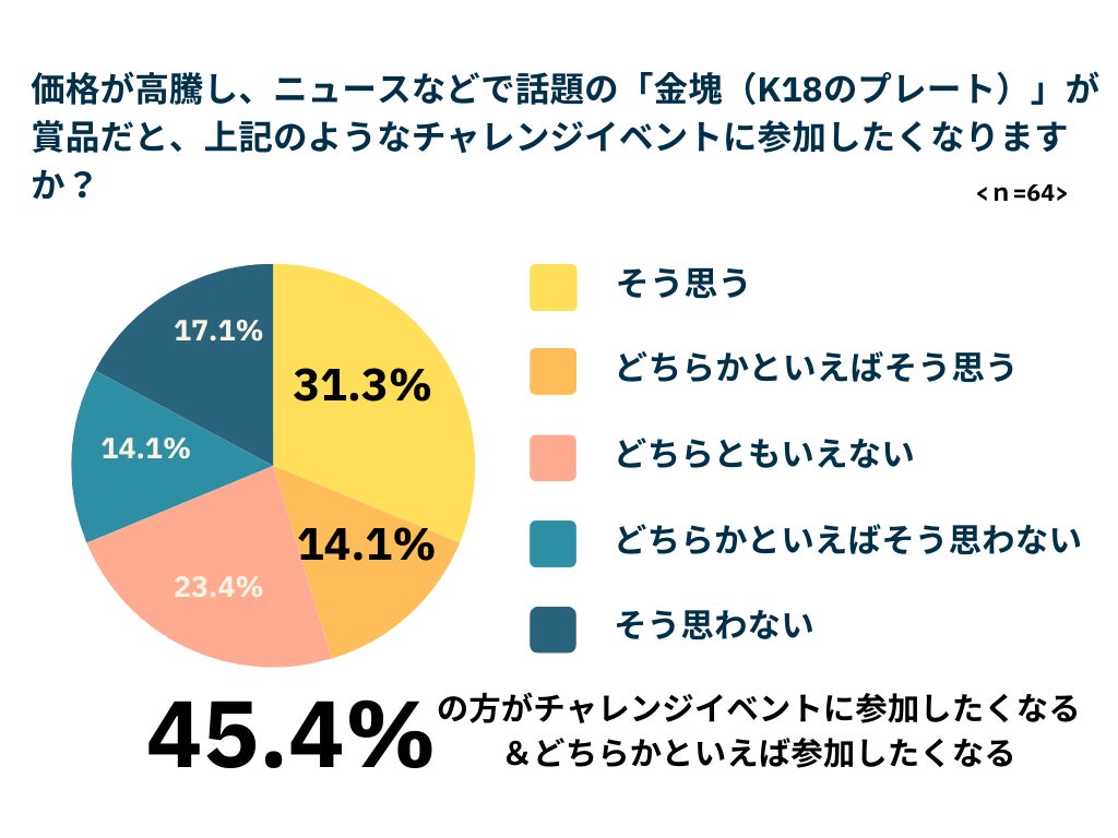 フィットネス事業において、会員の継続利用は重要です。以下の2023年12月に現会員に向け調査した会員限定イベントに関するアンケート結果より、賞品付きのイベントは、会員のモチベーションを高め、継続利用につながることが分かりました。これまでにない「金塊」を賞品とした本企画で、トレーニングに意欲的に取り組んでいただき、会員の継続利用の促進を目指します。
