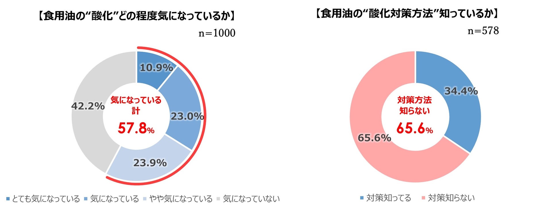 食用油の“酸化”が気になっている人は約6割。そのうち約7割は、酸化を気にしている一方で「酸化対策を知らない」と回答