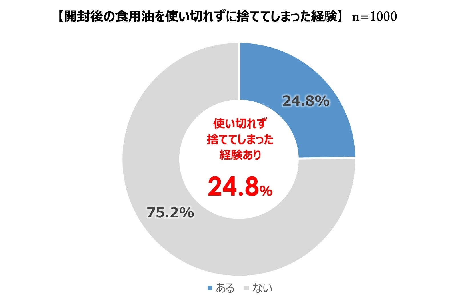 4人に1人が自宅にある油を使い切れず、捨ててしまった経験あり!捨ててしまった理由「容量が多い」「においが悪くなったから」が上位に
