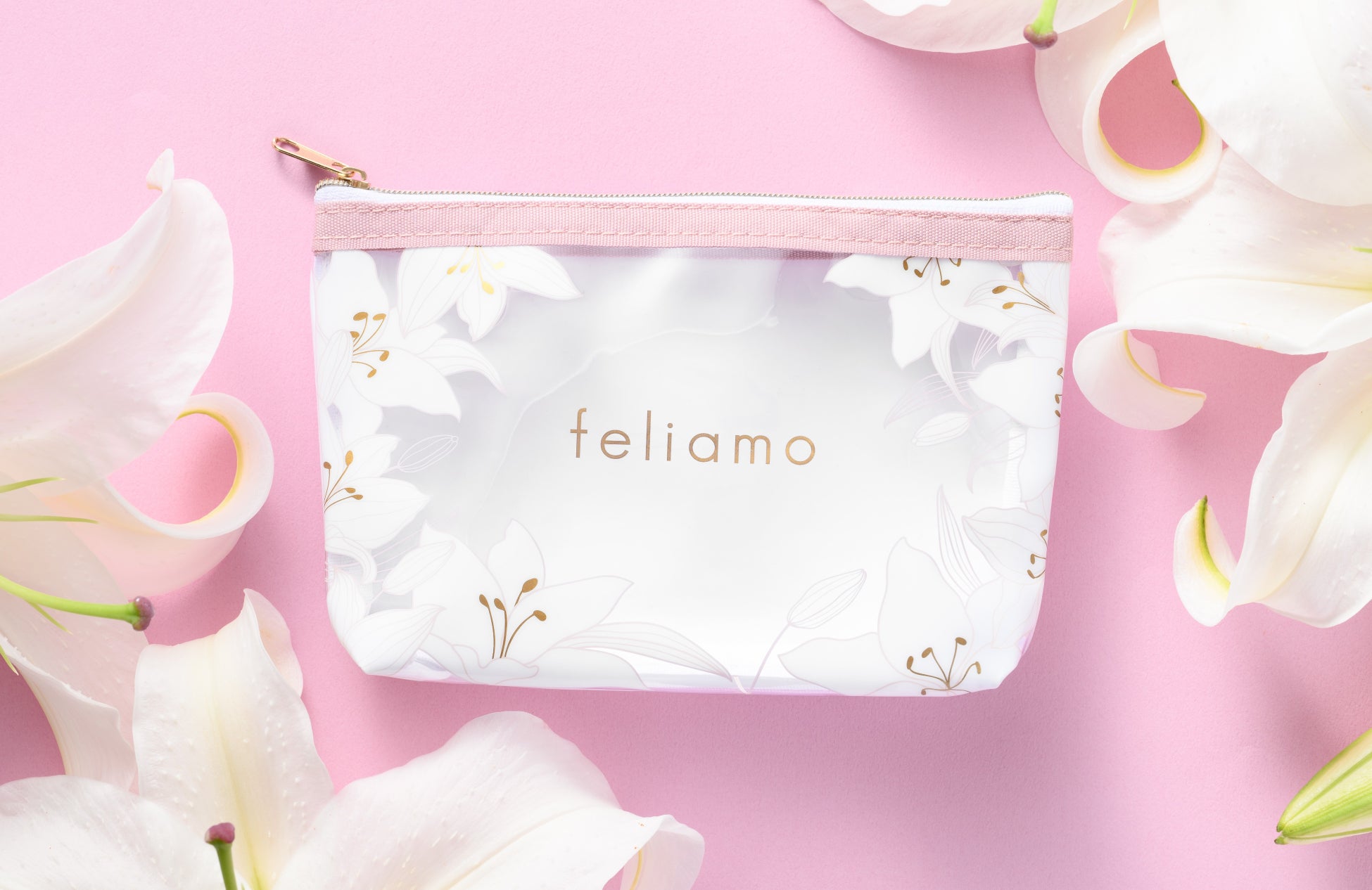 また発売を記念し、『feliamo(フェリアモ)1MONTH』2箱以上同時購入でオリジナルクリアポーチがもらえるノベルティキャンペーンを実施いたします。