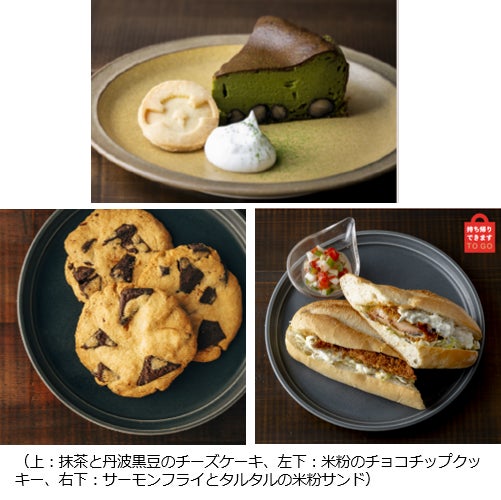 また、 2月20日(火)よりAKOMEYA食堂 神楽坂にて、「抹茶と丹波黒豆のチーズケーキ」や「サーモンフライとタルタルの米粉サンド」「米粉のチョコチップクッキー」といった米粉を使用したメニューを販売します。