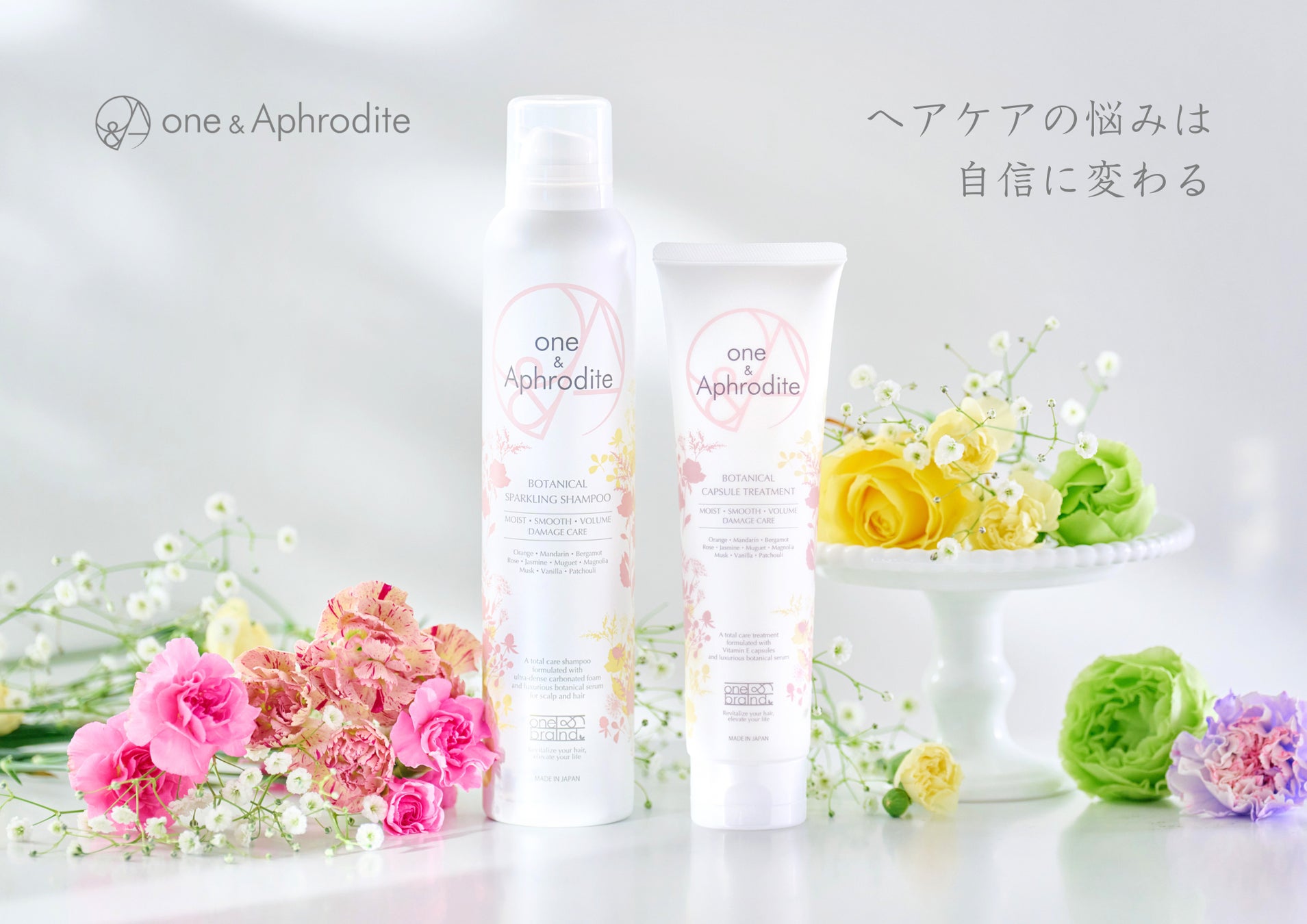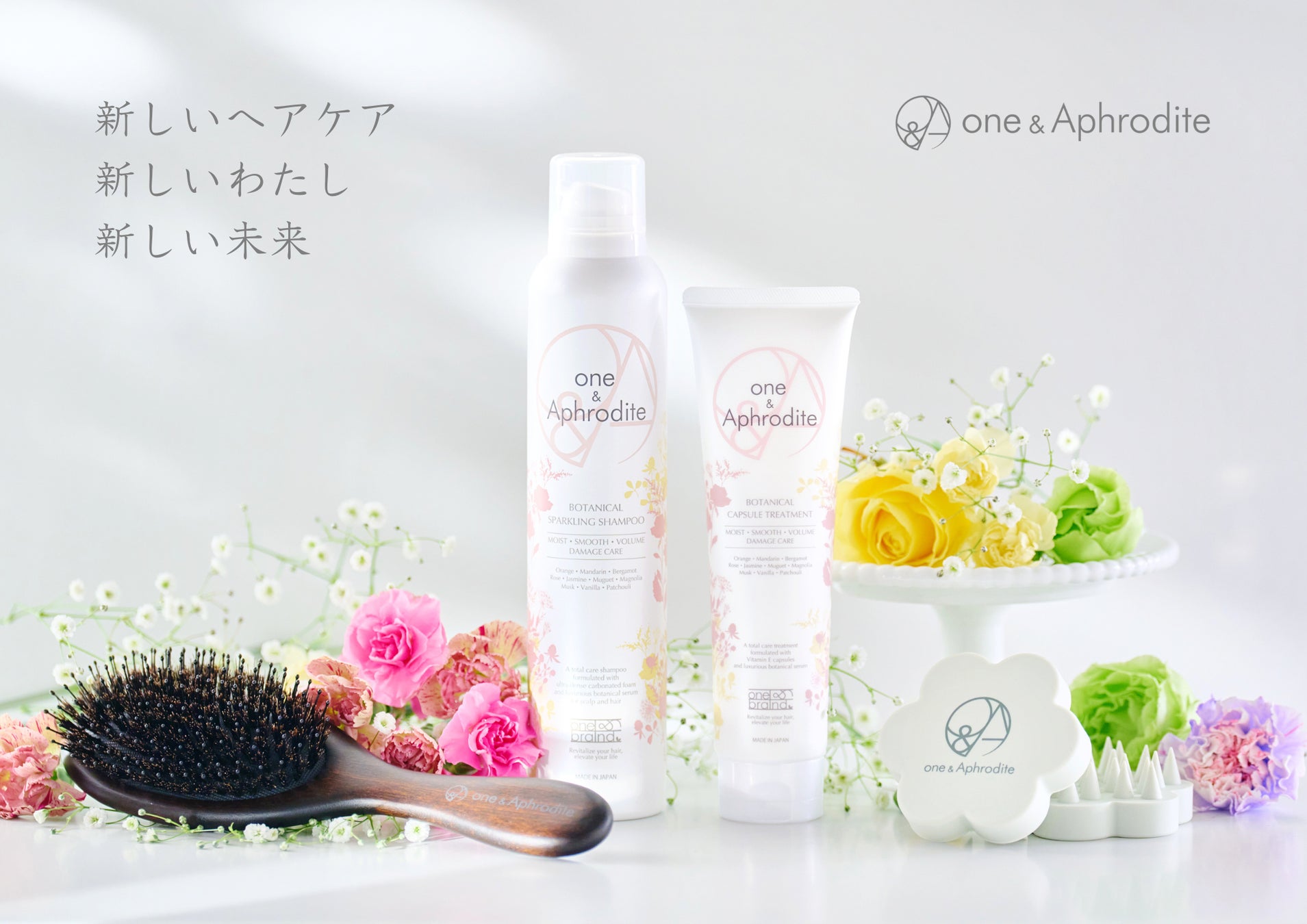 ヘアケアブランドone&Aphrodite(ワンアンドアフロディーテ)は、高級感あふれるうるツヤ髪に導く「ボタニカル スパークリング シャンプー & ボタニカル カプセル トリートメント」を、2024年2月21日(水)より発売いたします。忙しくて頻繫にサロンに行けない現代人向けに、サロンクオリティのホームケアを手軽に実現する、自然の恵みと科学の力を融合した商品を提供いたします。