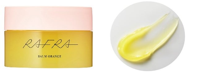 じんわりとろける+8℃*1の温感バームが固くこわばった肌をほぐし*2、毛穴汚れやメーク、くすみ*3まですっきり落とす、ラフラ人気No.1*の『バームオレンジ』。美容液で洗うという発想のもと、オイル級に優れたクレンジング力と、美容液パック後の肌のようなうるおい感を両立させています。
