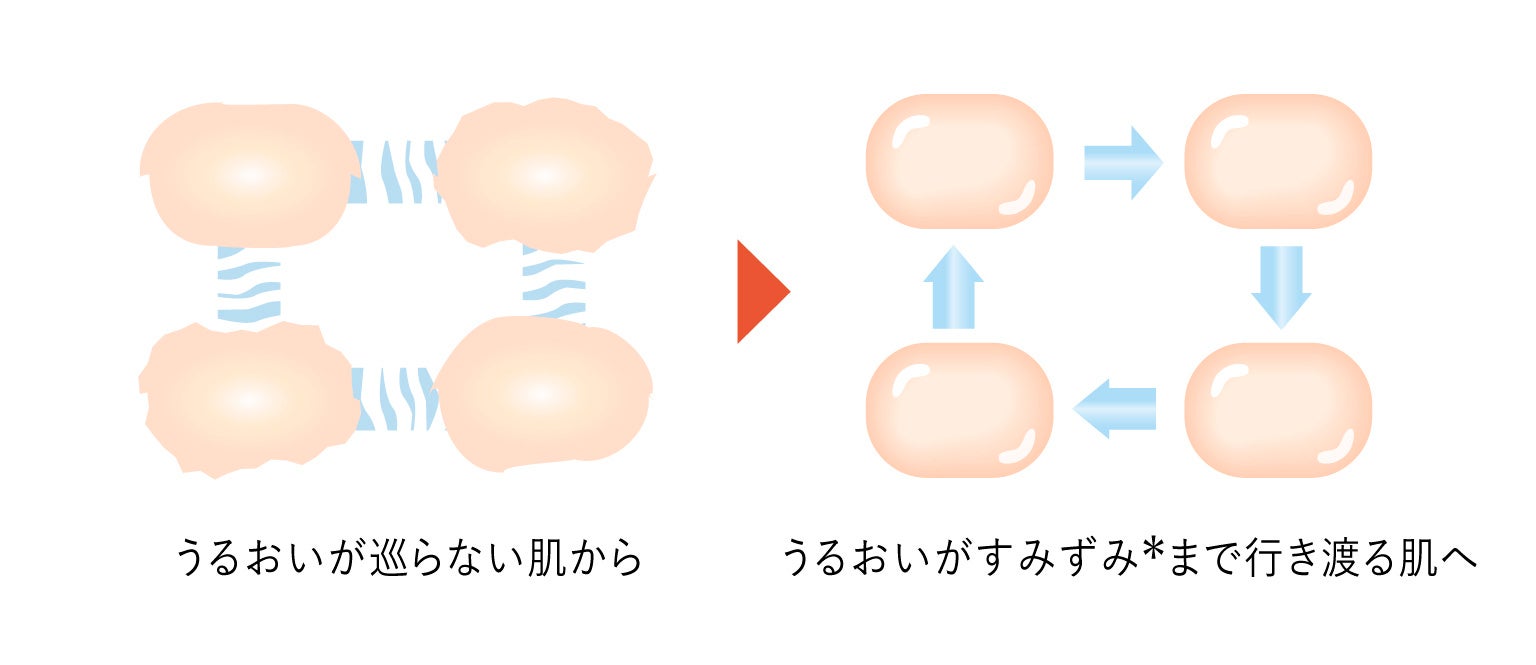 ※テトラヘキシルデカン酸アスコルビル(整肌成分) ※1保湿成分 ※2保湿・エモリエント・皮膚コンディショニング成分の合計、水を含む ※3整肌成分 ※4マンダリンオレンジ果皮エキス(整肌成分) ※5ウンシュウミカン果皮エキス(整肌成分)*当社従来品比 *1古い角質や汚れ *2うるおった肌印象のこと *3化粧品効能による、年齢に応じたお手入れ