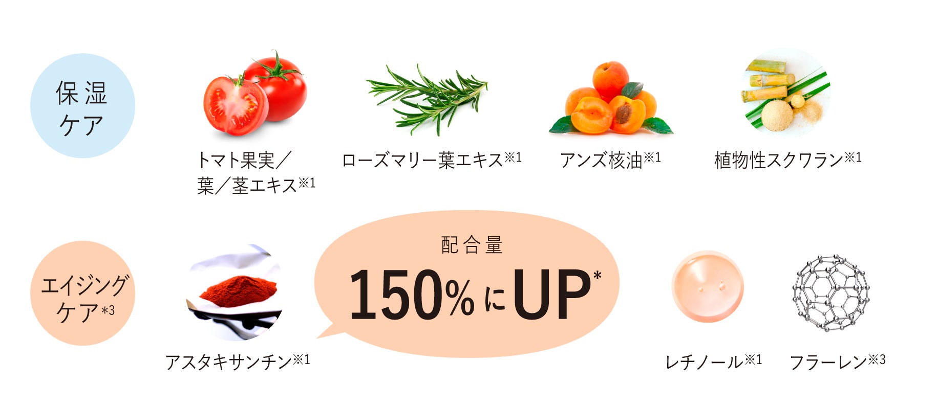 Renewal Point 3 ─ ビタミンC誘導体※&アスタキサンチン※1が150%にUP*+新成分配合