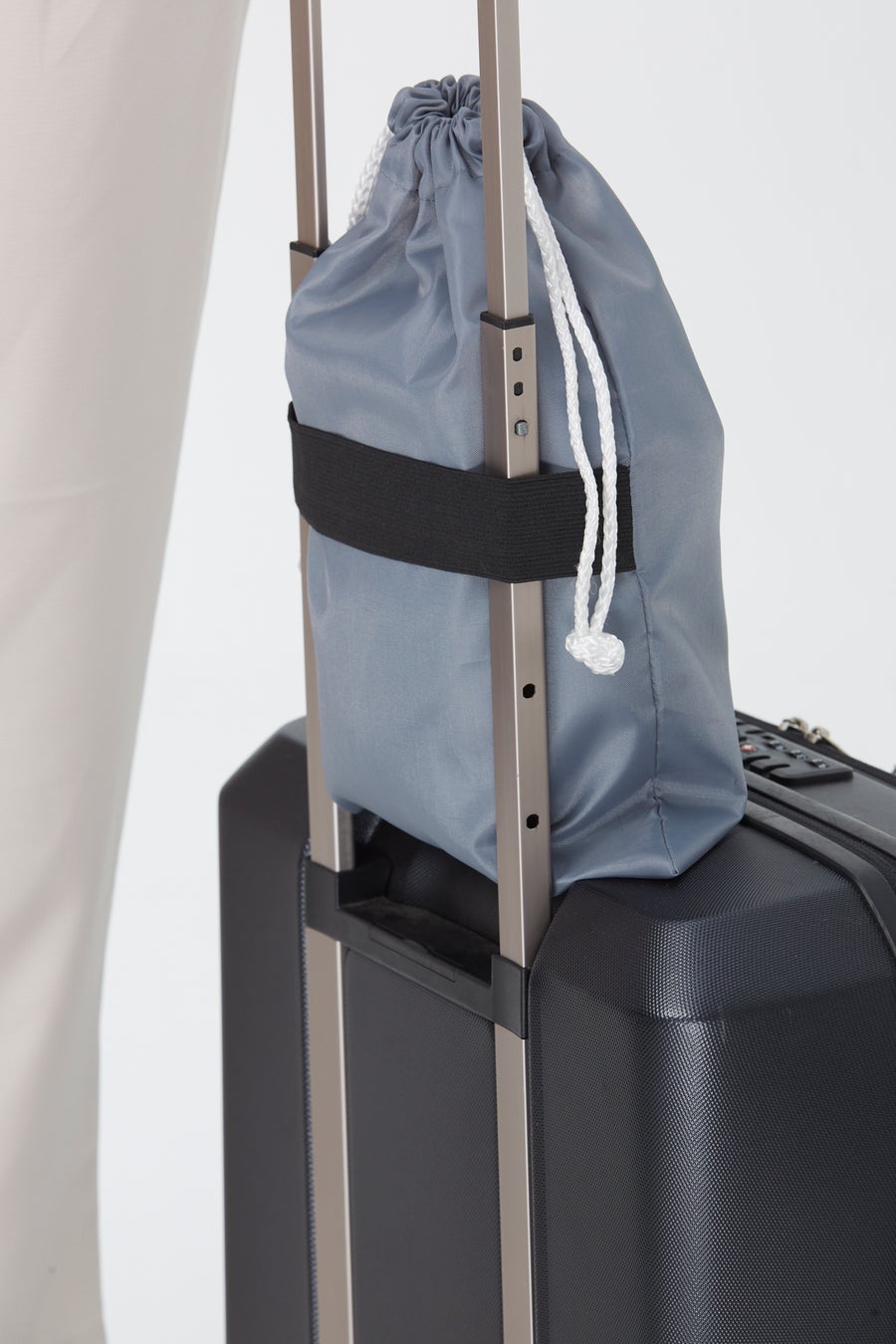 そして専用のポーチも付属。専用ポーチには伸縮バンドがついているので、スーツケース入りきらないときでも括り付けることも。旅行や出張でも気軽に持ち運びできます。