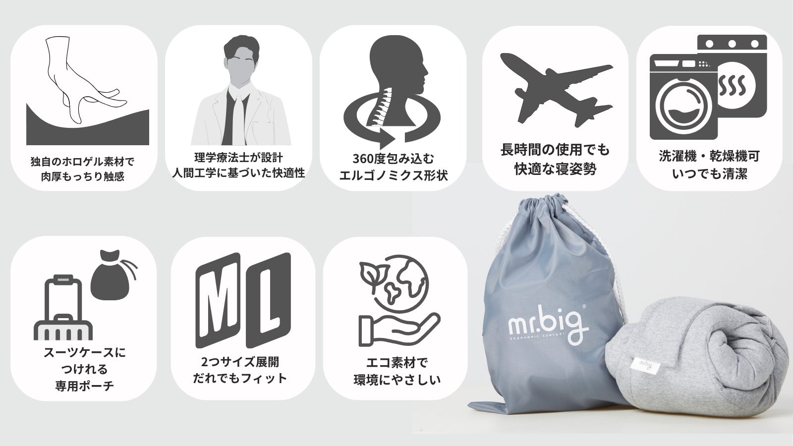 OneRidgeTrading(所在地:東京都港区)では、2024年2月21日より、「mr.big トラベルピロー」の先行予約販売を応援購入サービス Makuakeにて開始いたしました。