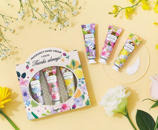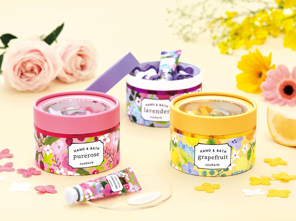 株式会社グローバルプロダクトプランニング(本社:東京都渋谷区南平台町)は、花やハーブの心地よい香りで暮らしを楽しく彩る『サンハーブ』から、様々な世代に支持されるやさしい香りのハンドクリームが入った「ハンドクリームセット」「ハッピープチギフト」とゆっくり温まれる入浴料「サンクスバスソルトセット」を2月22日に発売します。